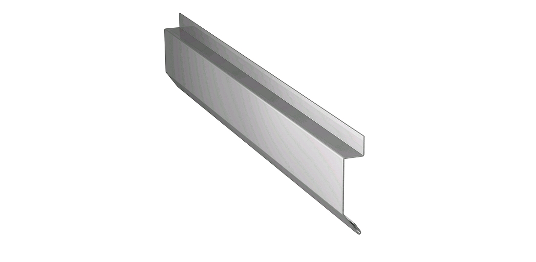 Profilé qui se place contre une paroi vertical dans le sens de la pente afin de permettre l’écoulement de l’eau de pluie.. Largeur du couloir 120mm. AluZinc